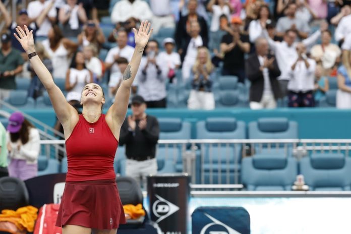 “I’m super happy that I was able to handle my emotions at the end of the second set. It was really intense and it was a real fight over there,” Sabalenka told the Tennis Channel after the match. “I’m very happy I was able to close this match in two sets.