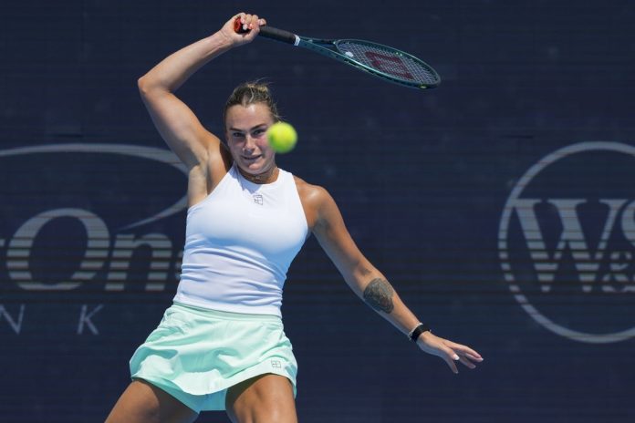 The top-seeded Belarusian recorded six aces at the WTA 1000 tournament to dispatch the 16th-seeded Russian in 75 minutes.