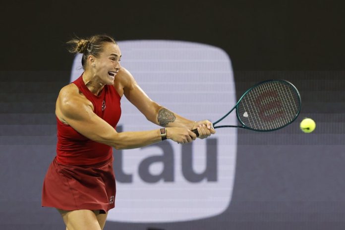 Aryna Sabalenka rallied in the second set to beat China’s Qinwen Zheng 6-2, 7-5 in the quarterfinals of the Miami Open on Tuesday.