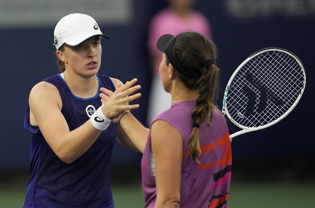 No. 1 Iga Swiatek of Poland whipped No. 8 Veronika Kudermetova of Russia 6-0, 6-1, while No. 2 Jessica Pegula held off No. 5 Maria Sakkari of Greece 6-2, 4-6, 6-1 in Friday’s semifinals of the WTA 500 event.