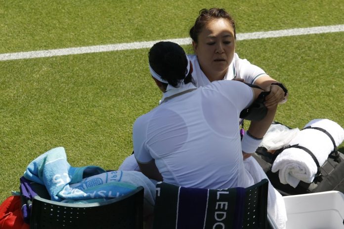 Former Wimbledon finalist Ons Jabeur’s tough season continued Monday when she retired from her first-round match against Viktoriya Tomova of Bulgaria at the All England Club in London.
