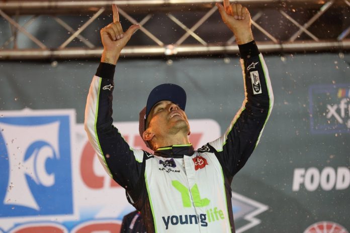 BRISTOL, Tenn. — Benefitting from a split-second late race strategy decision, veteran Aric Almirola held off a mightily-motivated field to claim the win in Friday night’s Food City 300 NASCAR Xfinity Series Playoff opener at Bristol (Tenn.) Motor Speedway.