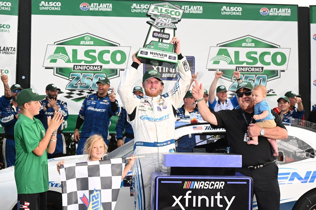 The Georgia native, 28, won at his hometown track for the first time in his NASCAR career, holding off JR Motorsports driver Josh Berry by a mere .111 seconds. It was the closest Xfinity Series race finish in track history and another fitting number nod to Hill’s finish.