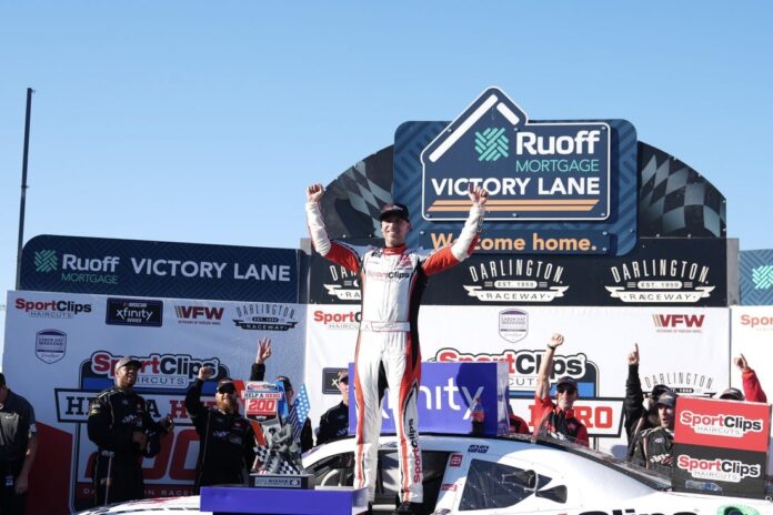 DARLINGTON, S.C. — Denny Hamlin resumed his NASCAR Xfinity Series mastery of Darlington Raceway on Saturday, winning the Sport Clips Haircuts VFW Help a Hero 200 to raise his victory total at the track to six.