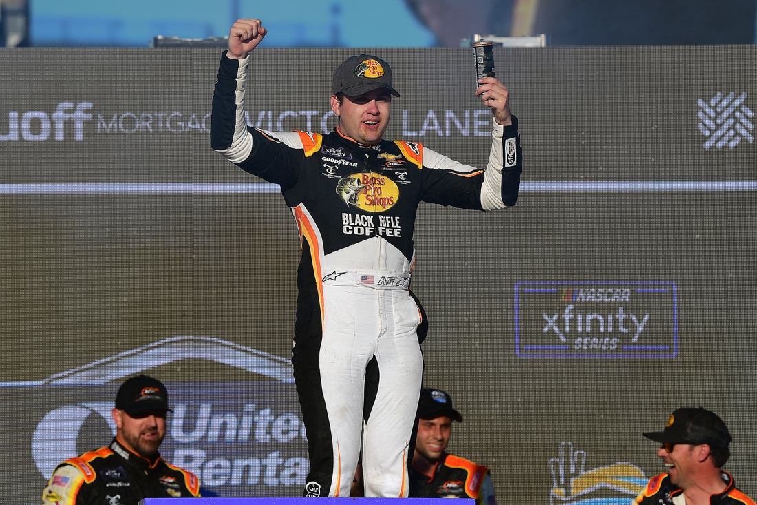 The 23-year-old Las Vegas native and his team celebrated the victory by scaling the wire fence on the front straightaway and pumping their fists at the cheering crowd. It was not only the first win of the year, but it was the fourth straight top-five finish for the team and increased his Xfinity Series championship lead to a more substantial 39 points over rookie Ty Gibbs, who finished sixth Saturday.