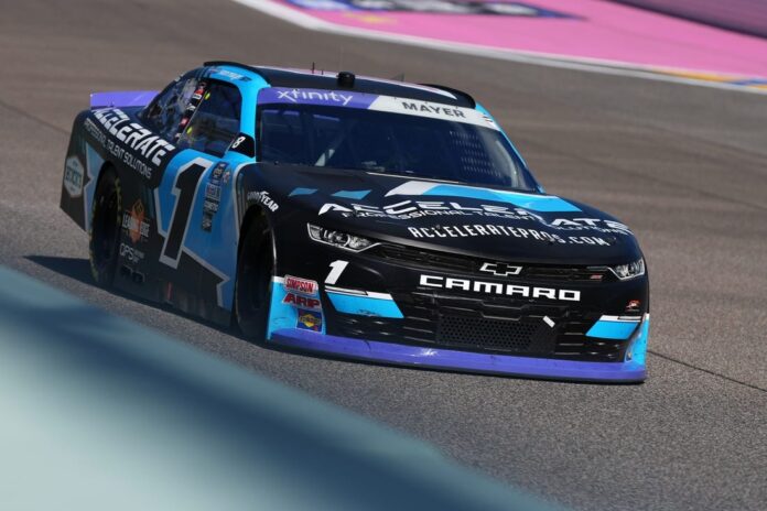 The 20-year-old Wisconsin native’s No. 1 JR Motorsports Chevrolet led 46 laps on the day — including the final 30 — but brushed the wall exiting Turn 3 as he pushed forward on the last lap to keep a fast-closing Herbst behind him. Mayer’s fellow NASCAR Xfinity Series championship contender John Hunter Nemechek finished third in the No. 20 Joe Gibbs Racing Toyota, leading seven laps despite feeling under the weather.